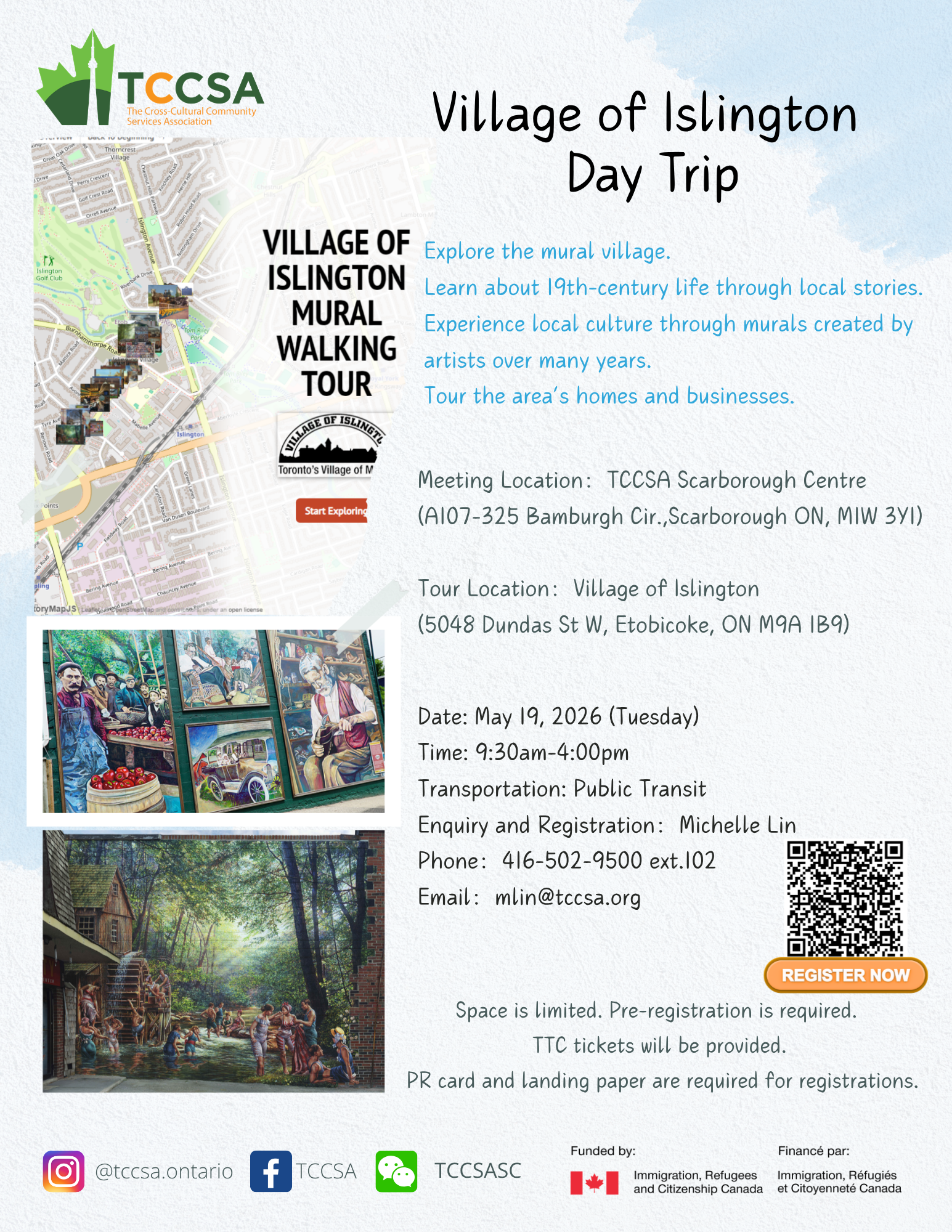 May 19 @ 9:30 am - 4:00 pm Village of Islington Day Trip TCCSA Scarborough Centre 325 Bamburgh Circle, Unit A107, Toronto