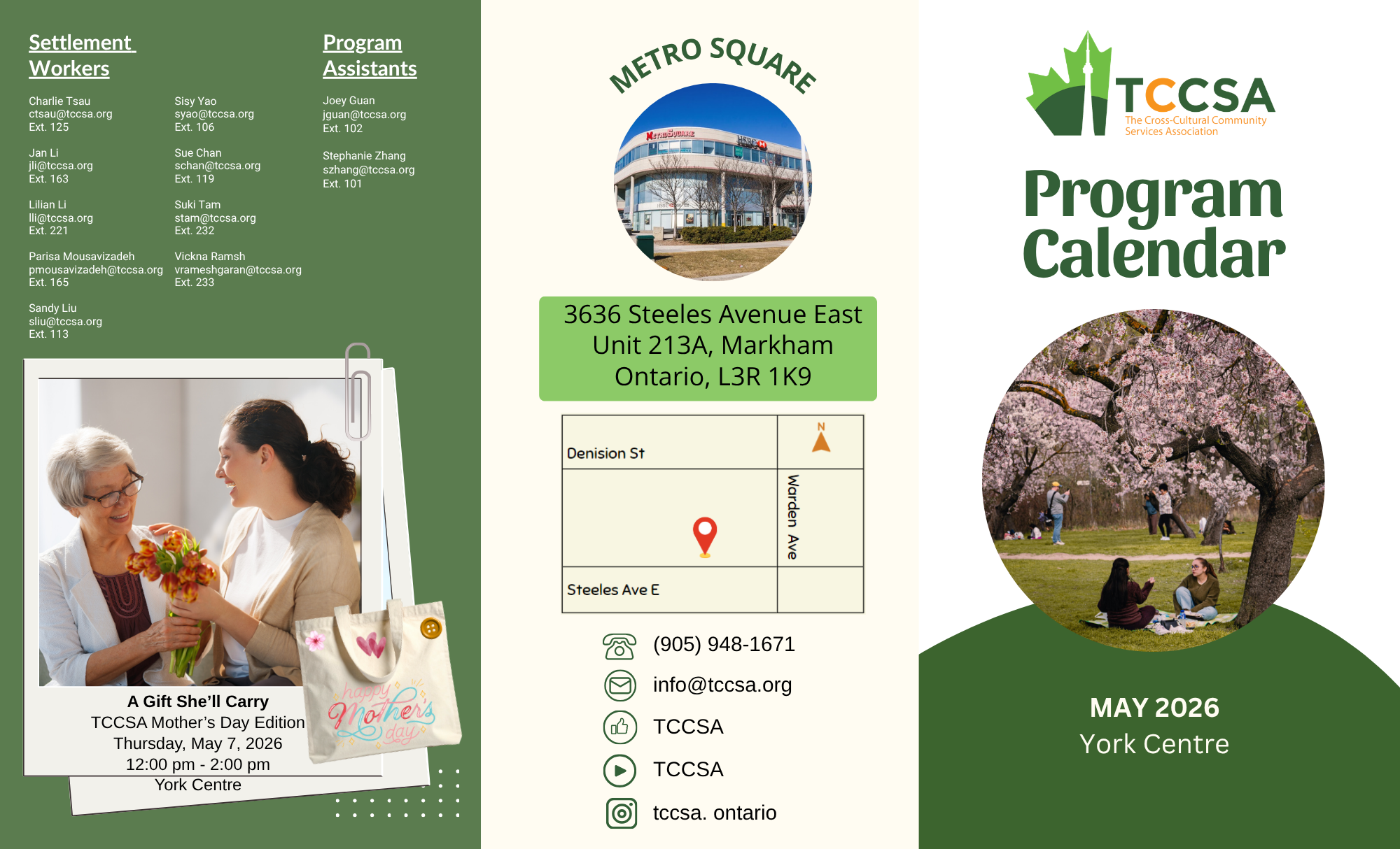 TCCSA York Centre Metro Square, 3636 Steeles Avenue East, Unit 213A, MarkhamTCCSA York Centre - May Program Calendar