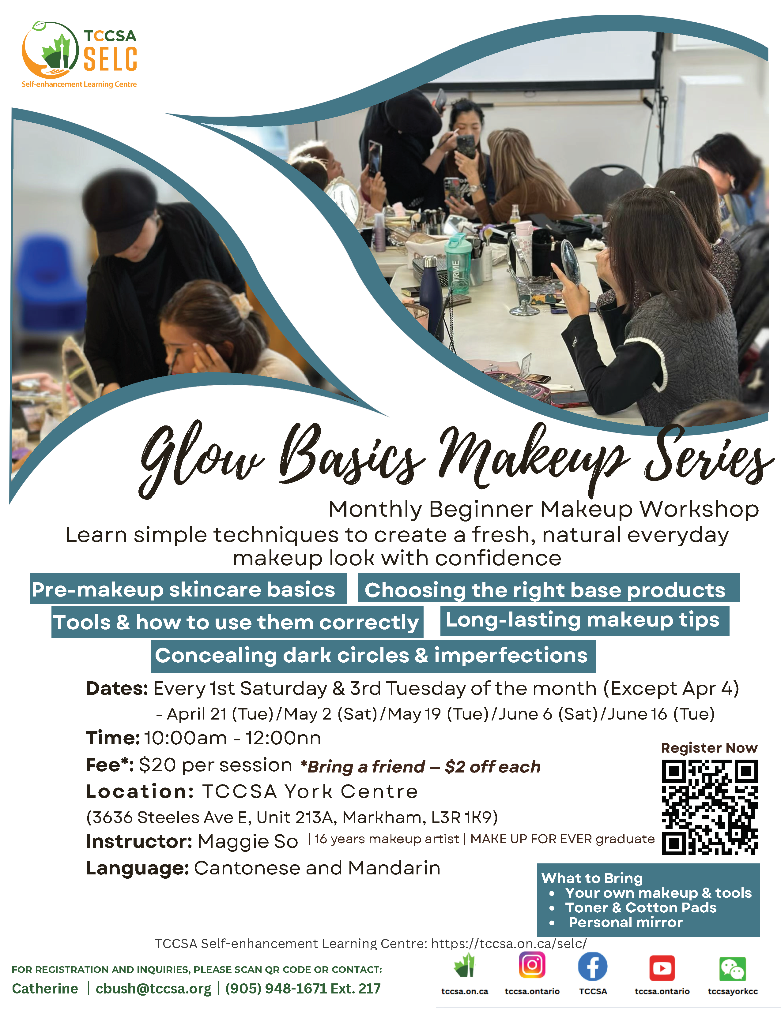 TCCSA Peel Centre 720 Burnhamthorpe Road West, Unit 2, MississaugaGlow Basics Makeup Series – Beginner (April to June)