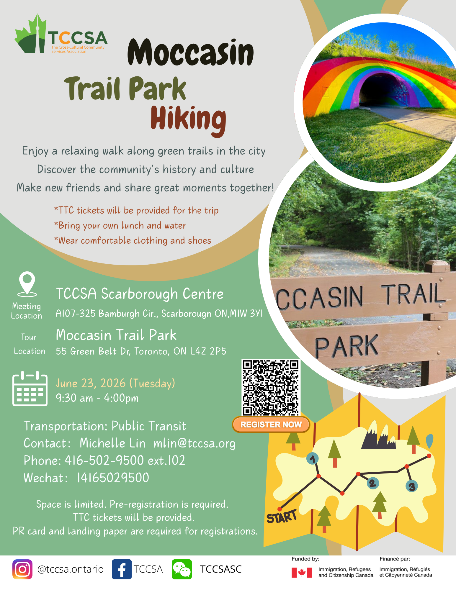 June 23 @ 9:30 am - 4:00 pm Moccasin Trail Park Hiking TCCSA Scarborough Centre 325 Bamburgh Circle, Unit A107, Toronto