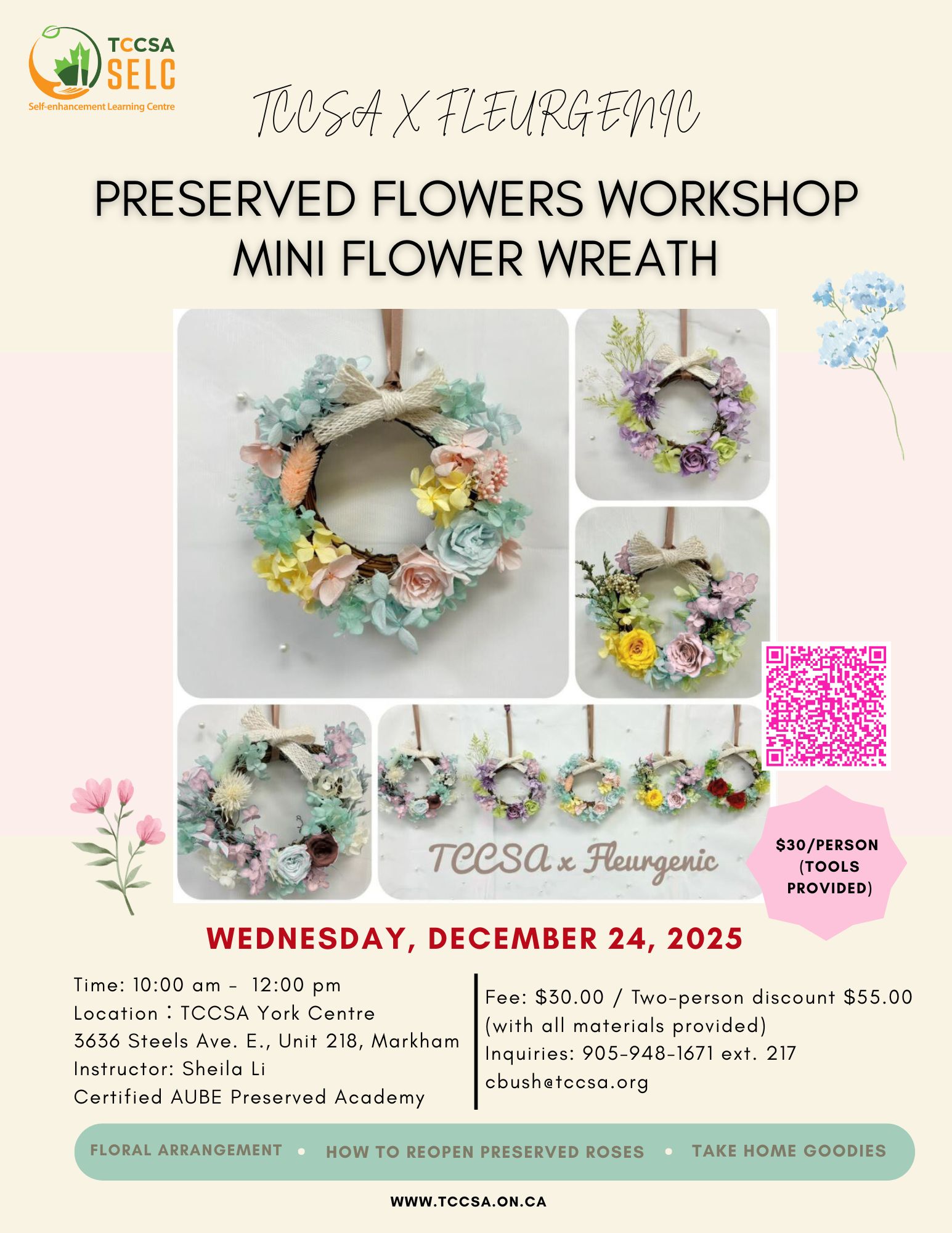 10:00 am - 12:00 pm Preserved Flowers Workshop – Mini Flower Wreath December 24 @ 10:00 am - 12:00 pm Preserved Flowers Workshop – Mini Flower Wreath