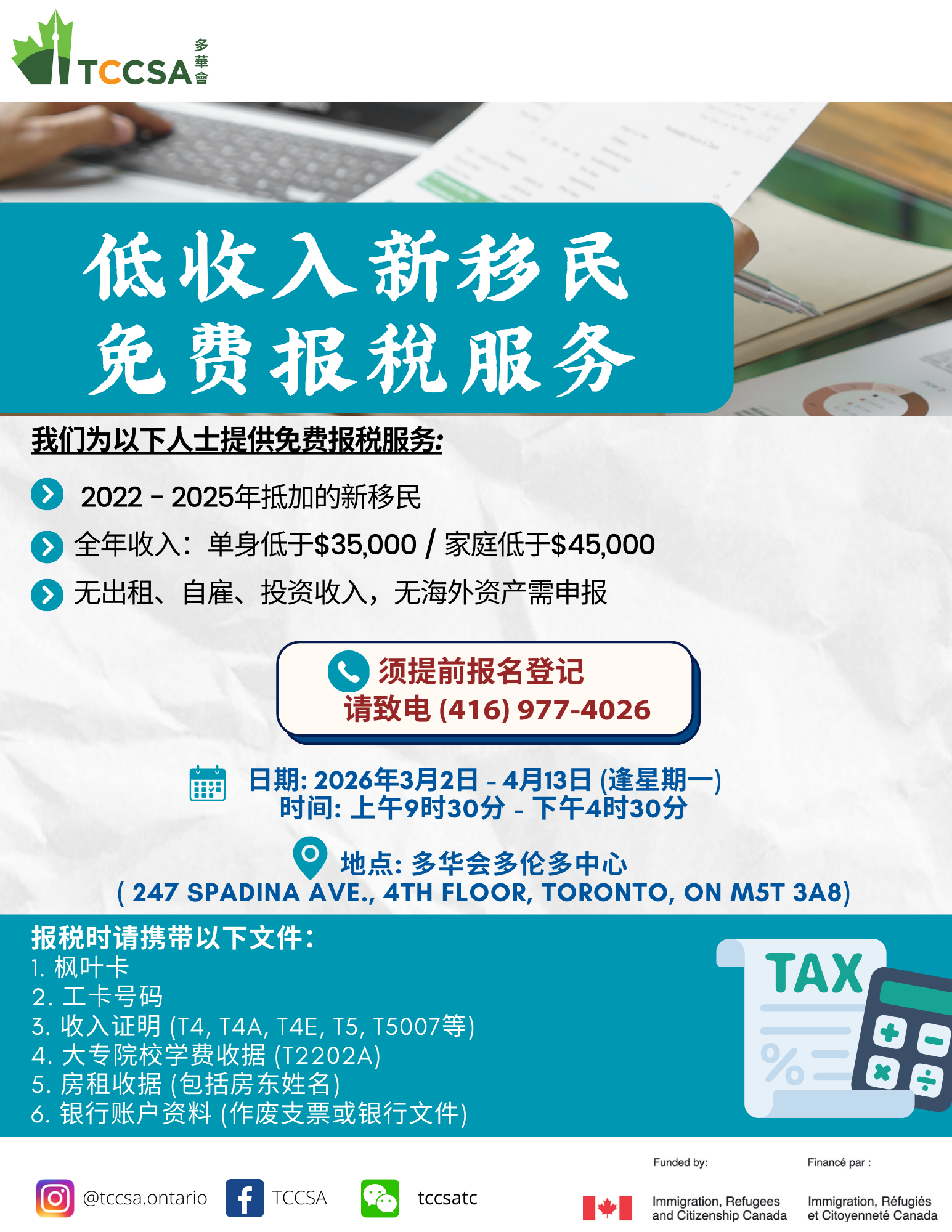 Free Tax Filing Services for Low-income Newcomers