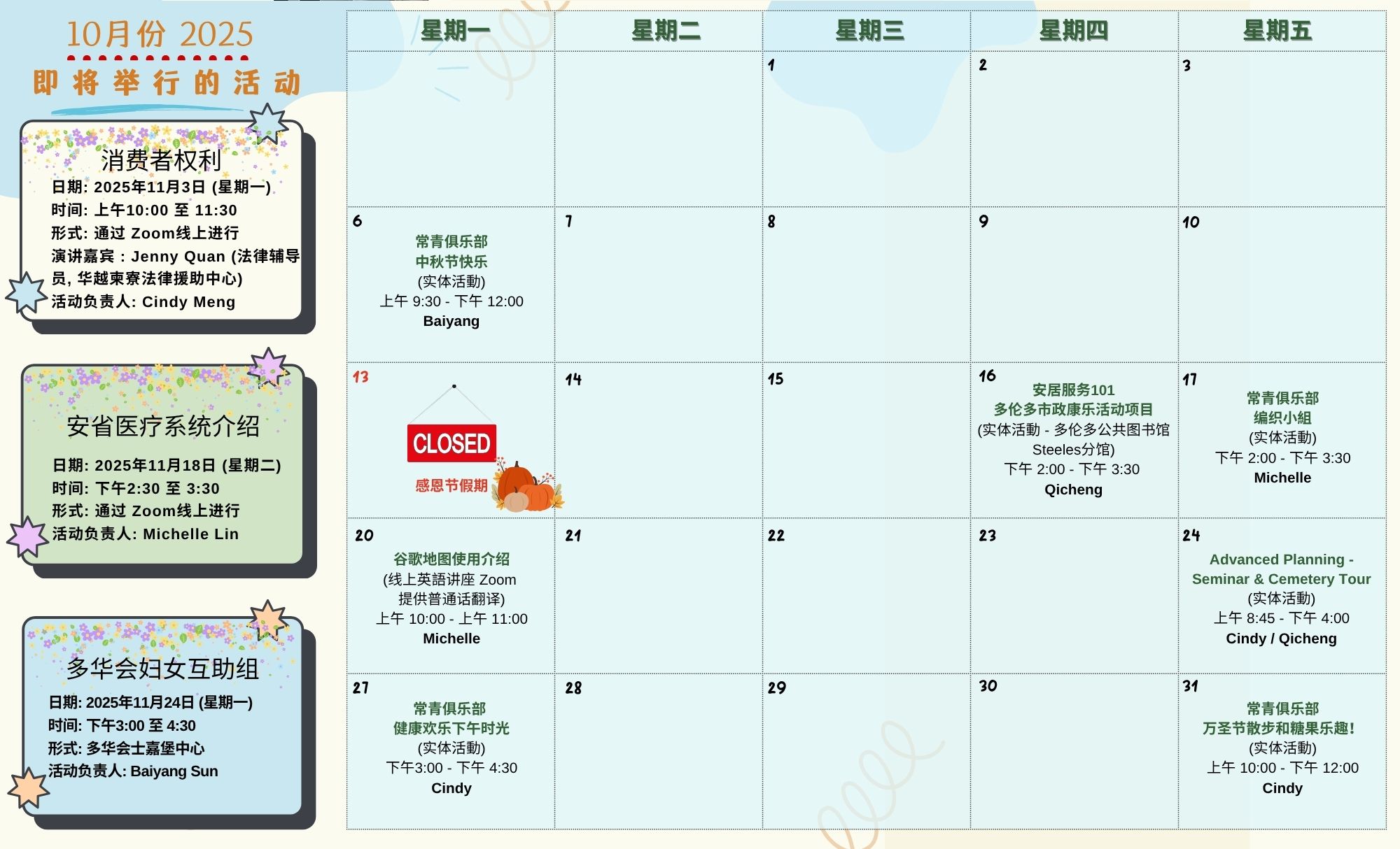 TCCSA Scarborough Centre – October Program Calendar 2025