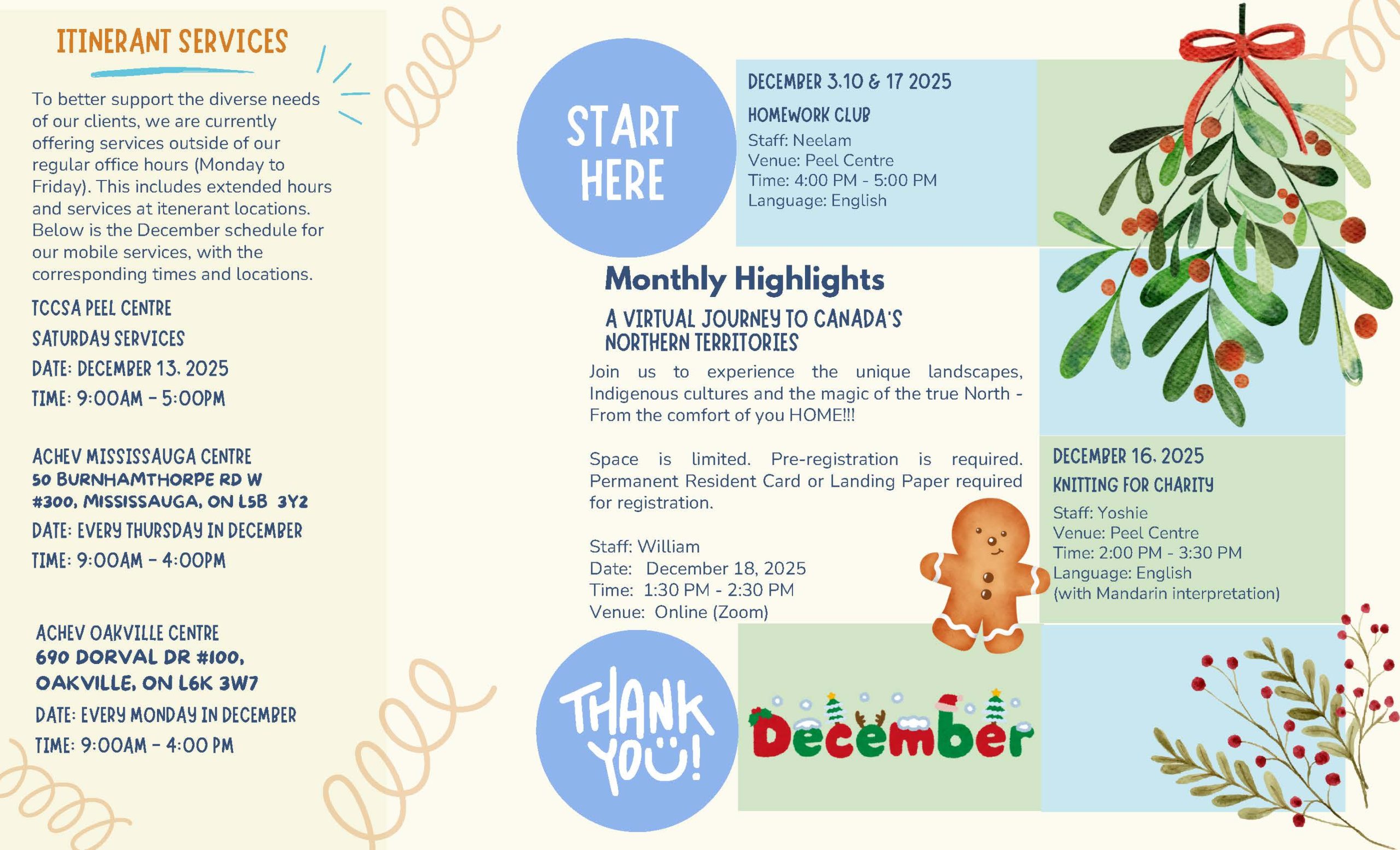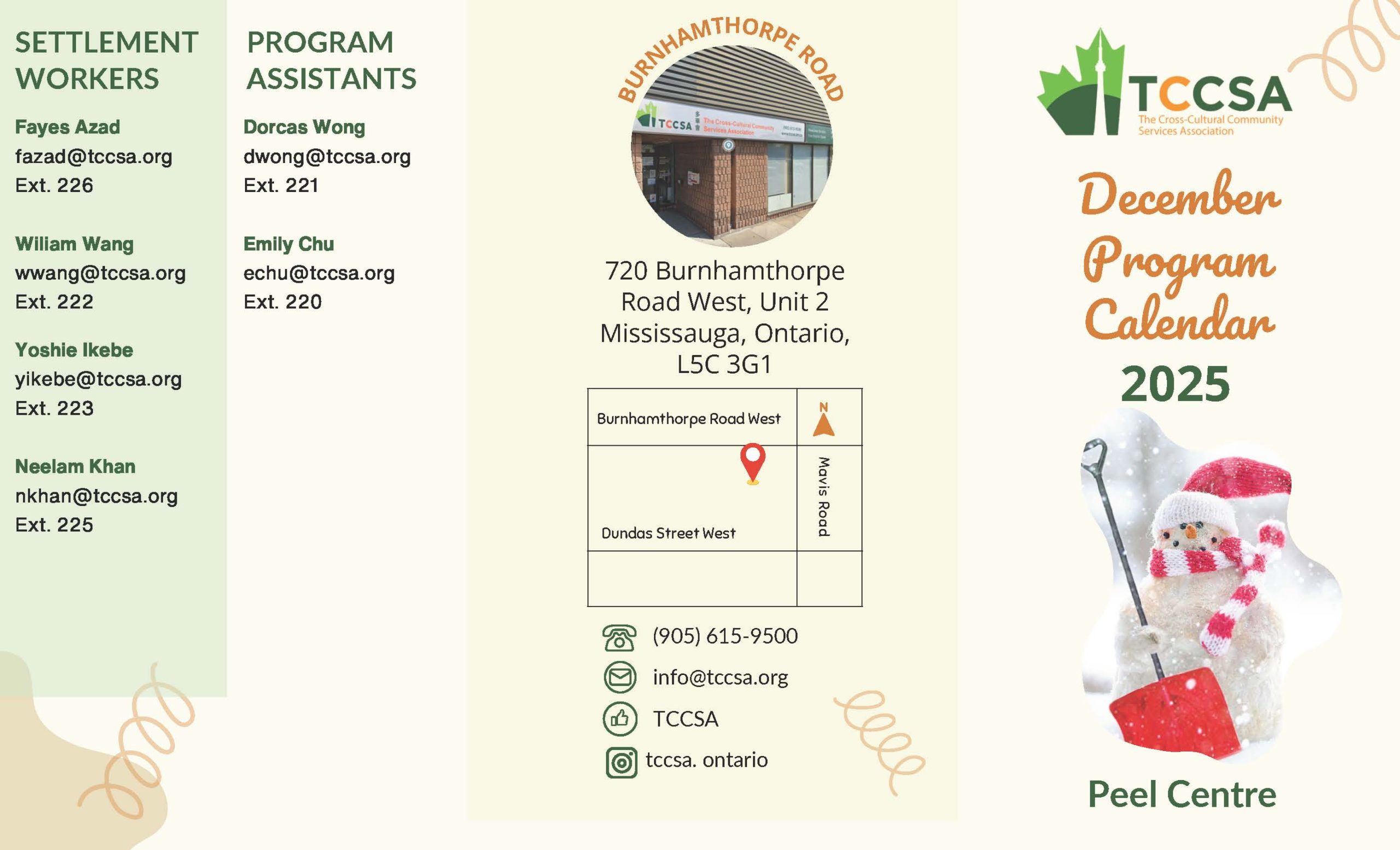 Featured November 1 - November 30 TCCSA Peel Centre – November Program Calendar 2025 TCCSA Peel Centre 720 Burnhamthorpe Road West, Unit 2, Mississauga