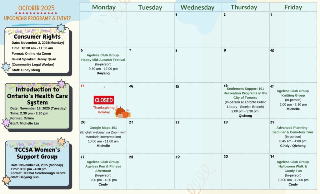 TCCSA Scarborough Centre 325 Bamburgh Circle, Unit A107, TorontoAgeless Club – Halloween Walk & Candy Fun!
