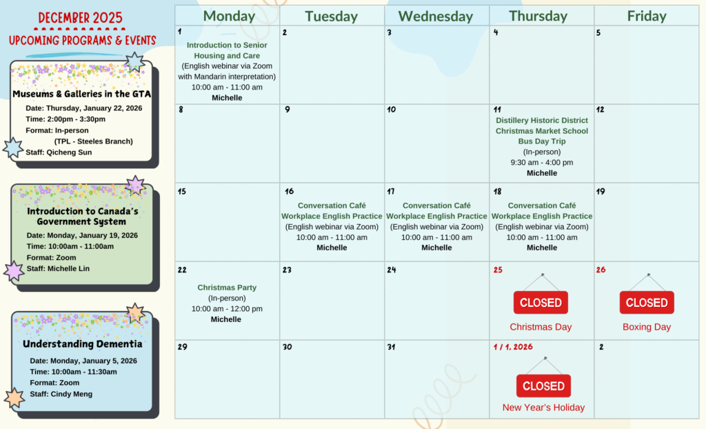 TCCSA Scarborough Centre 325 Bamburgh Circle, Unit A107, TorontoDistillery Historic District – Christmas Market School Bus Day Trip