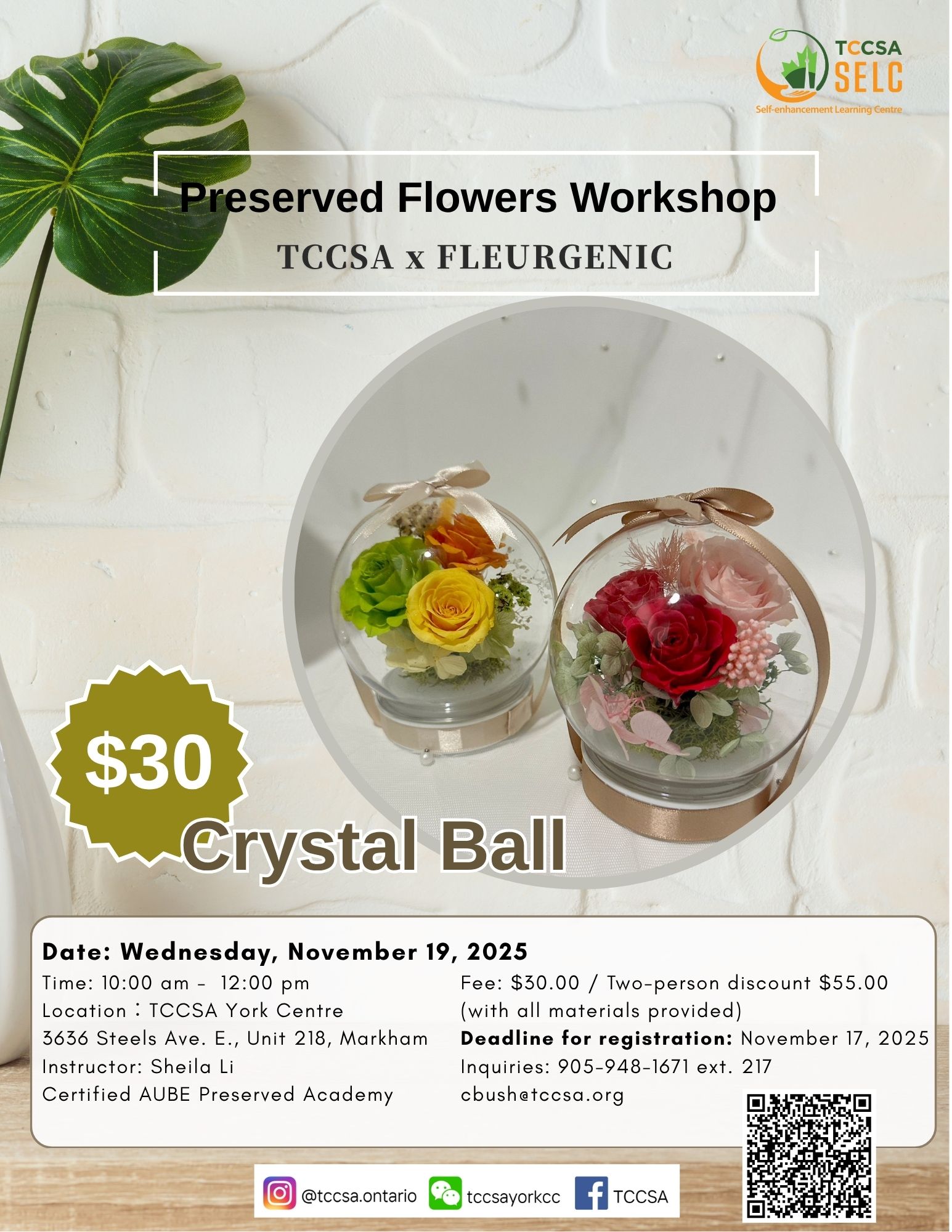 TCCSA York Centre Metro Square, 3636 Steeles Avenue East, Unit 213A, MarkhamPreserved Flower Workshop – Crystal Ball Workshop