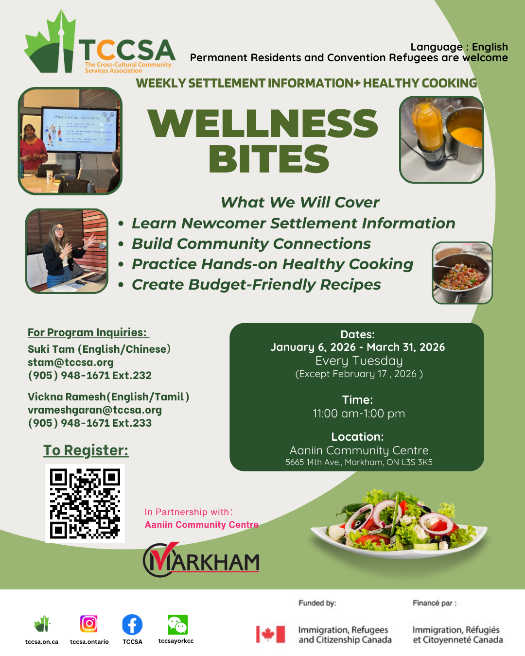January 20 @ 11:00 am - 1:00 pm Wellness Bites – January 6 to March 31, 2026 Aaniin Community Centre 5665 14th Ave, Markham