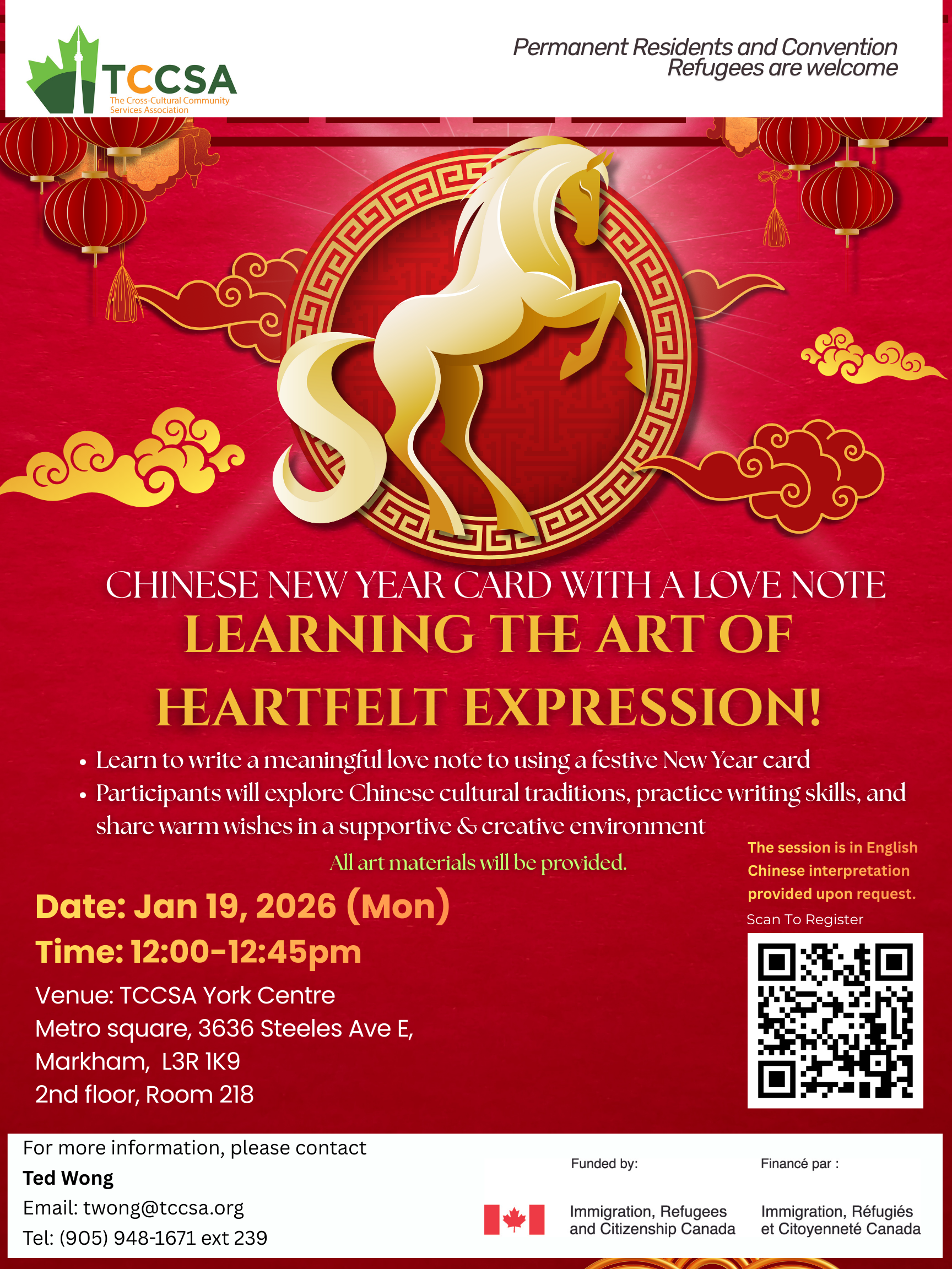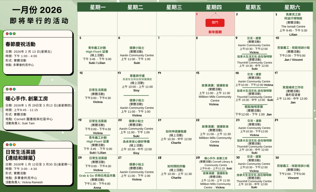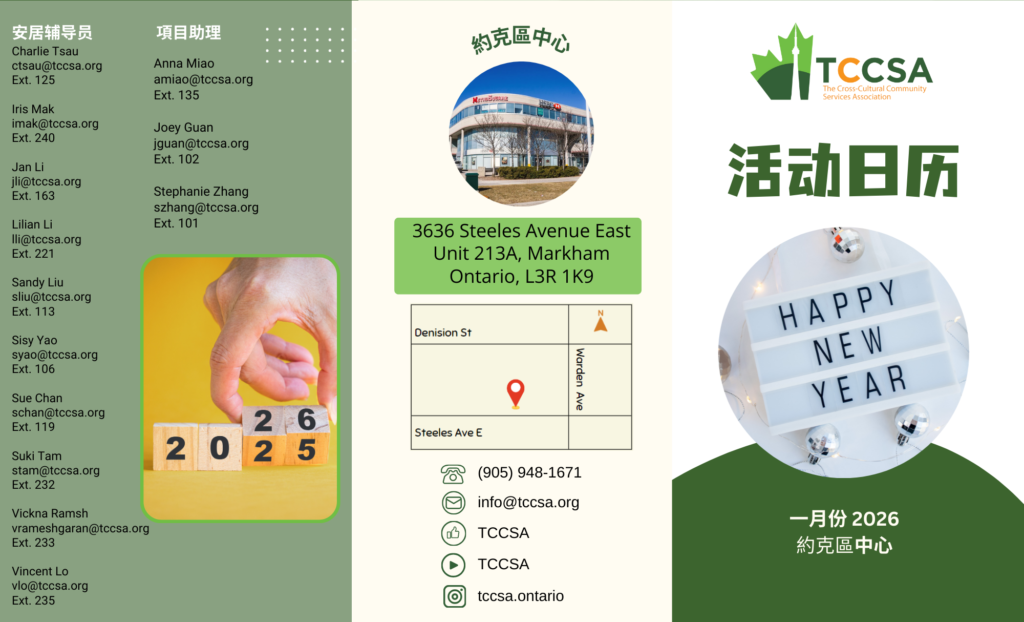 Featured January 1 - January 31 York Centre – January Program Calendar 2026 TCCSA York Centre Metro Square, 3636 Steeles Avenue East, Unit 213A, Markham