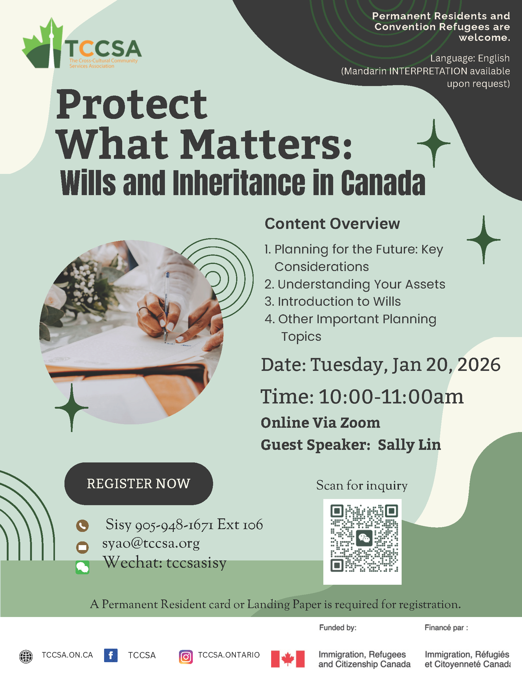 TCCSA York Centre – Program Calendar 2026 Click to enlarge the program calendar 按圖片放大課程日曆 York Centre Upcoming Events: Events Search and Views Navigation Search Enter Keyword. Search for Events by Keyword. Find Events Event Views Navigation List List Month Photo Today Now Now - 1/23/2026 January 23 Select date. January 2026 Fri 16 Featured January 1 - January 31 York Centre – January Program Calendar 2026 TCCSA York Centre Metro Square, 3636 Steeles Avenue East, Unit 213A, Markham Mon 19 January 19 @ 12:00 pm - 12:45 pm Learning the Art of Heartleft Expression TCCSA York Centre Metro Square, 3636 Steeles Avenue East, Unit 213A, Markham Mon 19 January 19 @ 3:00 pm - 4:30 pm English for Everyday Life (Connect and Belong) – Jan 12 to March 30, 2026 TCCSA York Centre Metro Square, 3636 Steeles Avenue East, Unit 213A, Markham Mon 19 January 19 @ 3:45 pm - 5:00 pm Certified Youth Leaders Program – High Five Certificate TCCSA York Centre Metro Square, 3636 Steeles Avenue East, Unit 213A, Markham Tue 20 January 20 @ 10:00 am - 11:00 am Protect What Matters: Wills and Inheritance in Canada Online Tue 20 January 20 @ 11:00 am - 1:00 pm Wellness Bites – January 6 to March 31, 2026 Aaniin Community Centre 5665 14th Ave, Markham Tue 20 January 20 @ 12:30 pm - 1:20 pm Excel Edge Program (Newcomer students – Grade 4 to 6) HG Bernard Public School 245 Bernard Ave, Richmond Hill Wed 21 January 21 @ 10:30 am - 12:00 pm How to apply for subsidized housing Online Fri 23 January 23 @ 10:30 am - 12:00 pm Chat & Connect – January 9 to February 27, 2026 Aaniin Community Centre 5665 14th Ave, Markham Fri 23 January 23 @ 10:30 am - 12:00 pm Life in Canada Cafe – January 9 to February 27, 2026 (every Friday) Previous Events Today Next Events Export Events