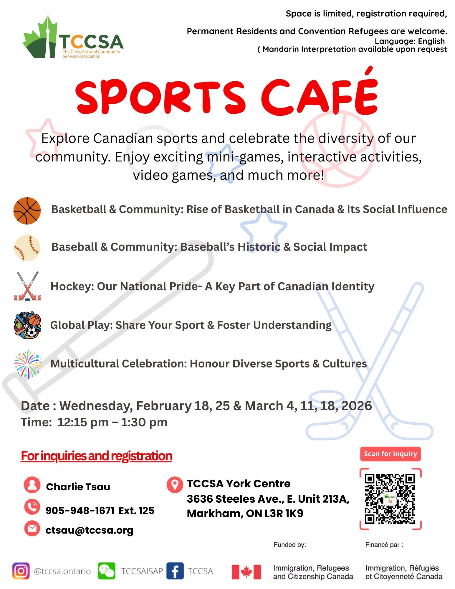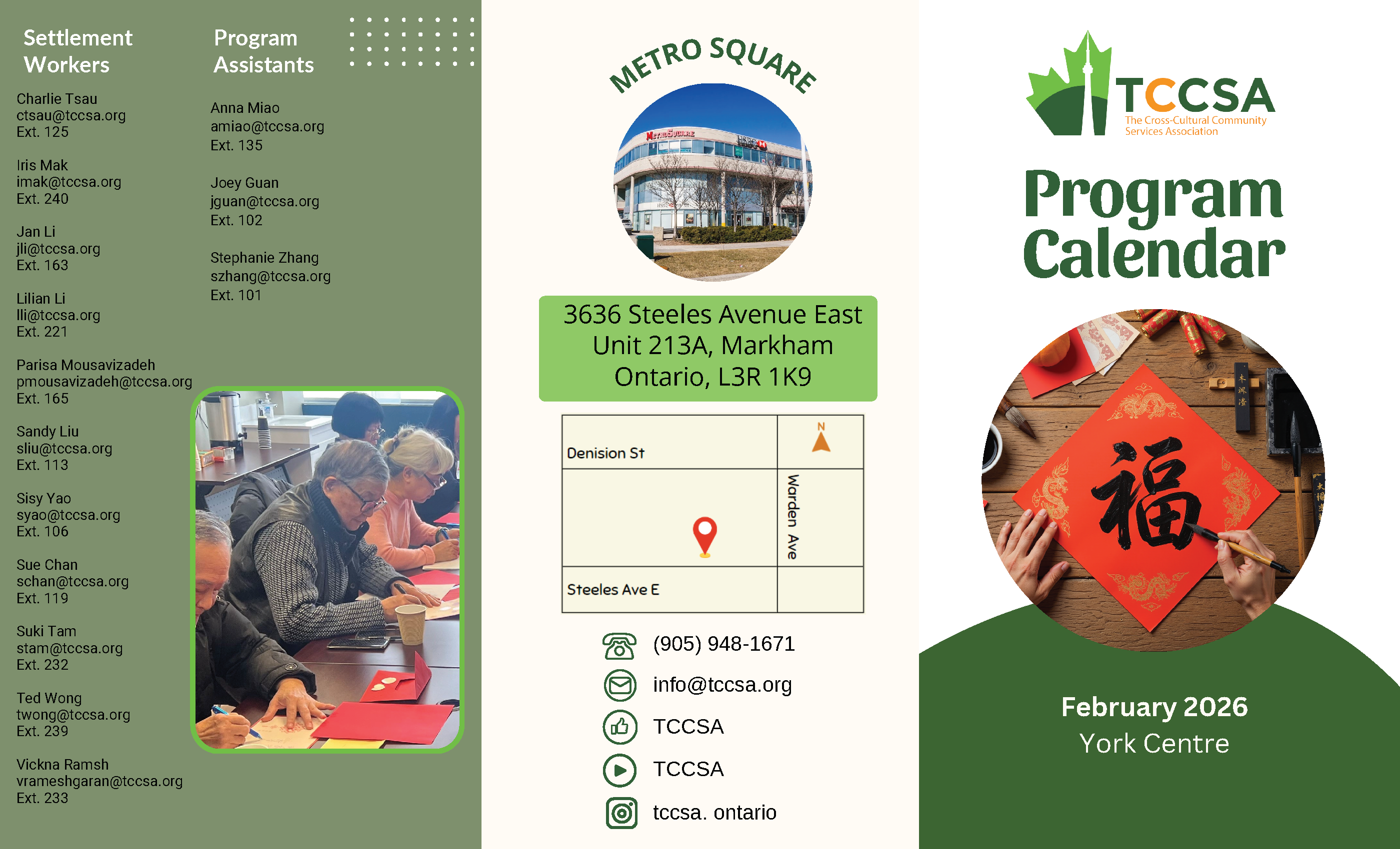 TCCSA York Centre Metro Square, 3636 Steeles Avenue East, Unit 213A, MarkhamWellness Bites – January 6 to March 31, 2026